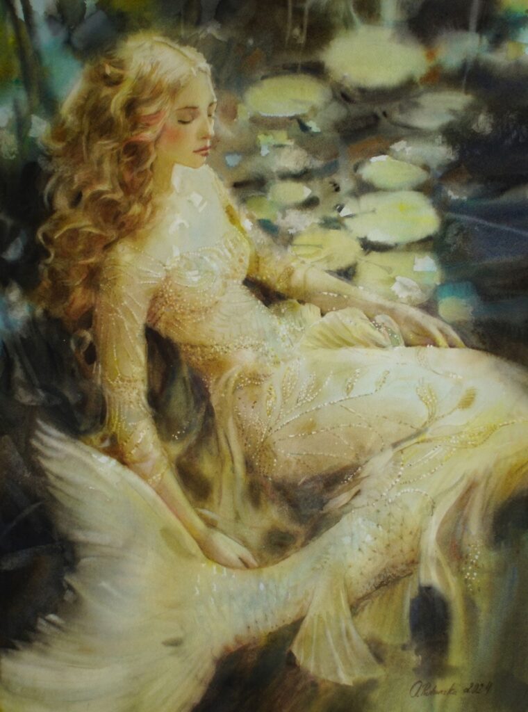 Using watercolour’s transparency, movement, and unpredictability, I create scenes inspired by rivers, gardens, forests, and quiet human presence within nature — a world inhabited by mermaids and forest spirits drawn from folklore and imagination. These works are not about escape (well, maybe a little), but about closeness — to water, to silence, and to a world where tenderness, magic, and wonder still exist.